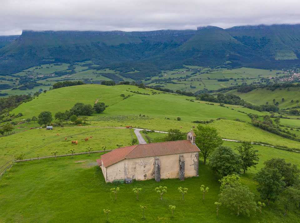 XVIII. mendean eraiki zen, egurrezko teilatua eta kanpai-hormako kanpandorrea dauzkan elizate luzea du, eta barruan erretaula barrokoa. Muino batean kokatuta, santutegi honetatik Gorobeleko (Salbada Mendilerroa) ikuspegi ederra ikus dezakegu.