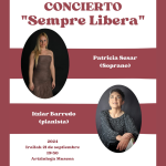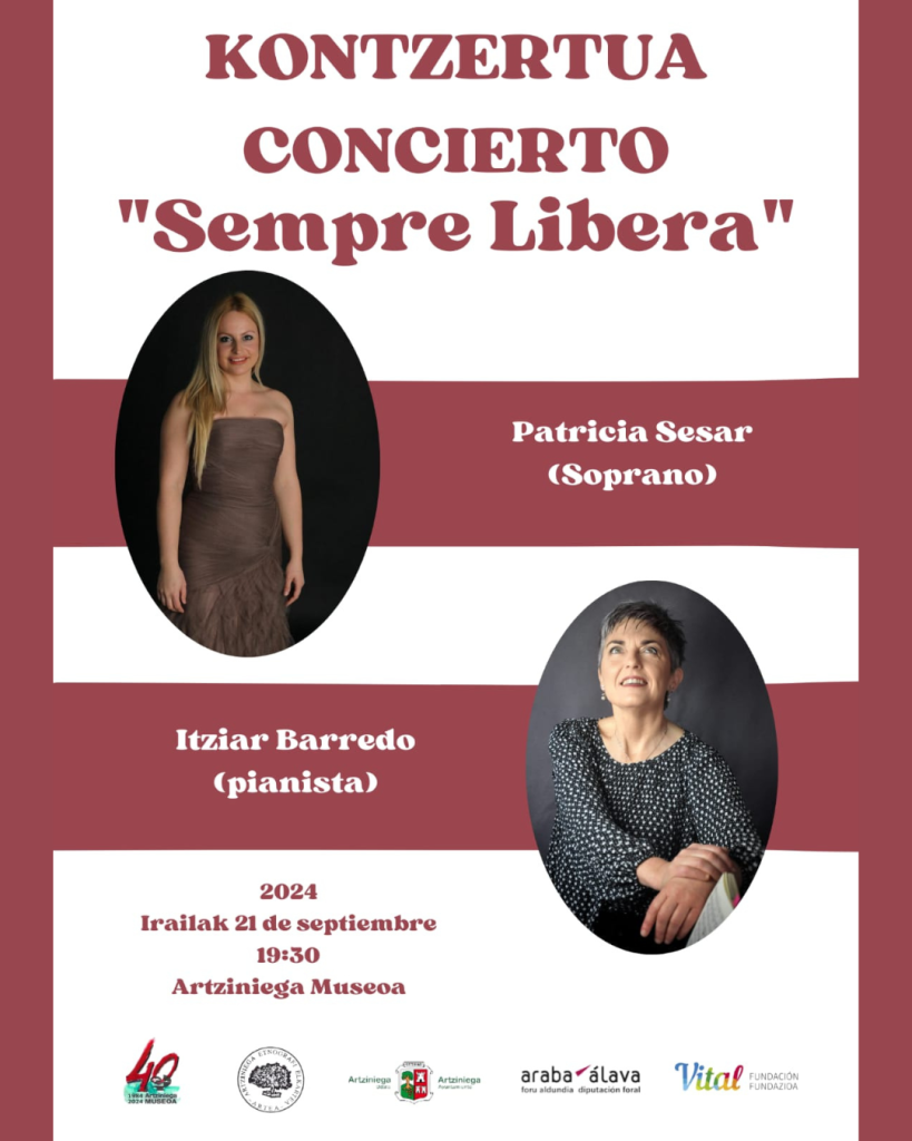 19:30 -20:30 21 September  Datorren larunbatean, irailak 21, ez galdu “Sempre libera” kontzertua museoan. 19:30ean, Patricia Sesar sopranoak eta Itziar Barredo piano-jotzaileak musikaz eta emozioz beteriko gau ahaztezinaz gozatuko dute. Ordutegia: 19:30 Lekua: Artziniegako Museoa