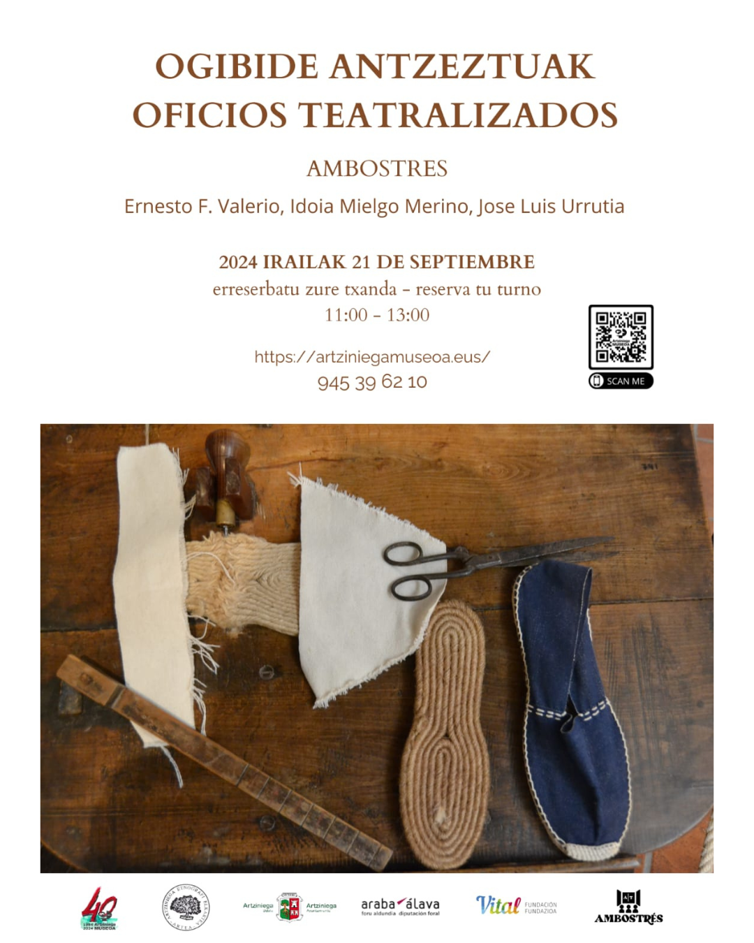 | 21Egun guztia 21 September-10 November  Azaroaren 10era arte Larunbatetan: 11:00-14: 00// 17:00-19: 30 Igandeetan: 11:00-14: 00 11:00 21 September  Datorren larunbatean, irailak 21, egun betea izango duzu Artziniegako museoan! Goizean, antzinako ofizioak berpizten ditu gure antzezpenak antzeztuz bi saiotan: 11:00etan eta 13:00etan. Ondoko kartelean aurkituko duzu zure plaza erreserbatzeko informazio guztia. Ordutegia: 11:00etan eta 13:00etan Lekua: Artziniegako Museoa