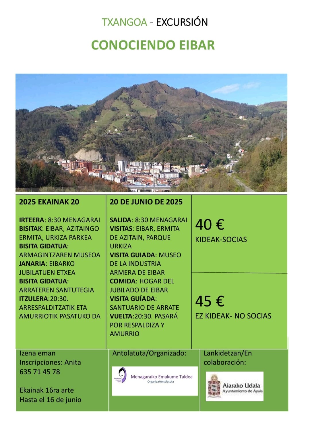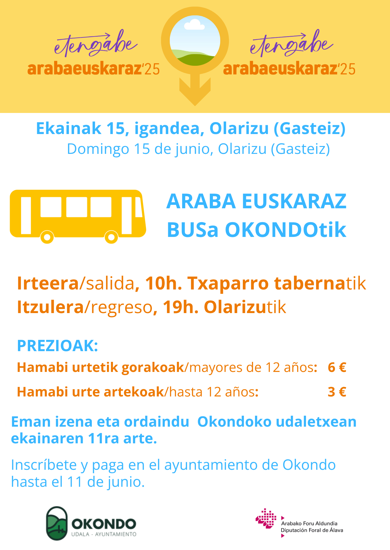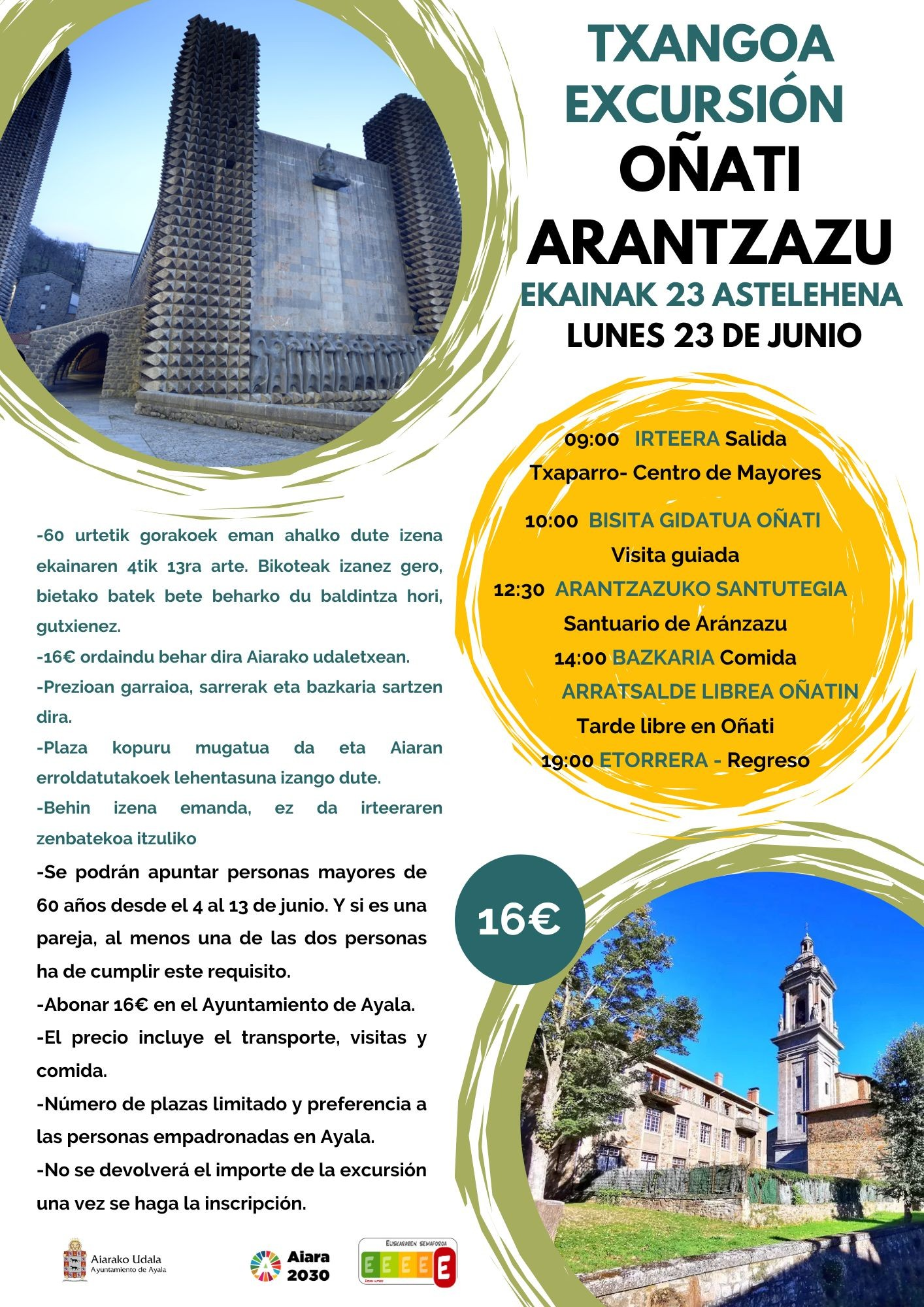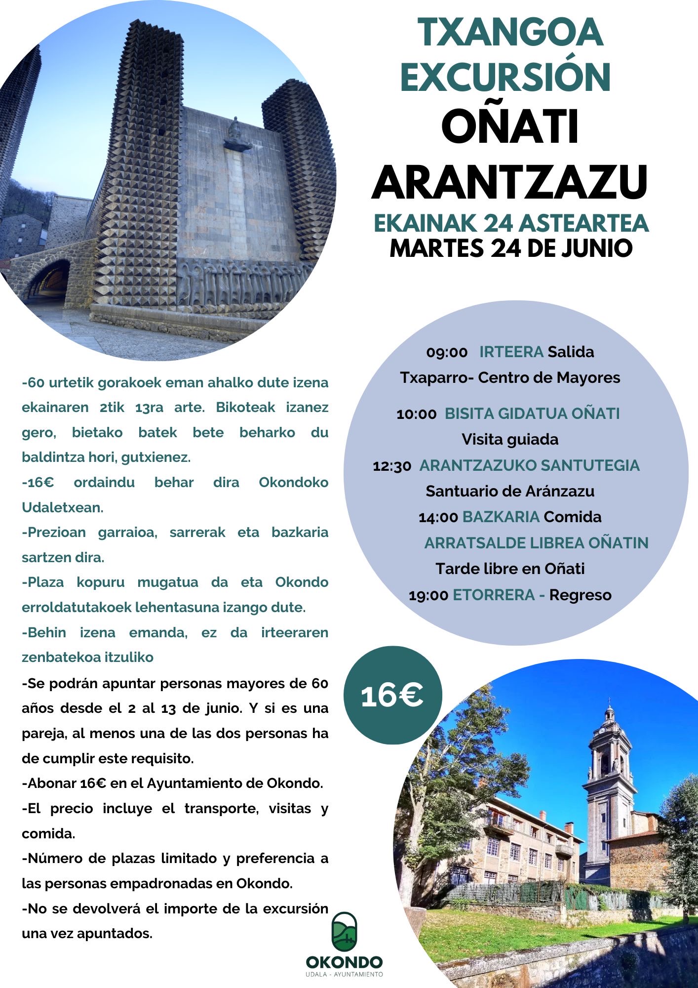 09:00 24 June  Centro de mayores Okondo. 16€ Okondo