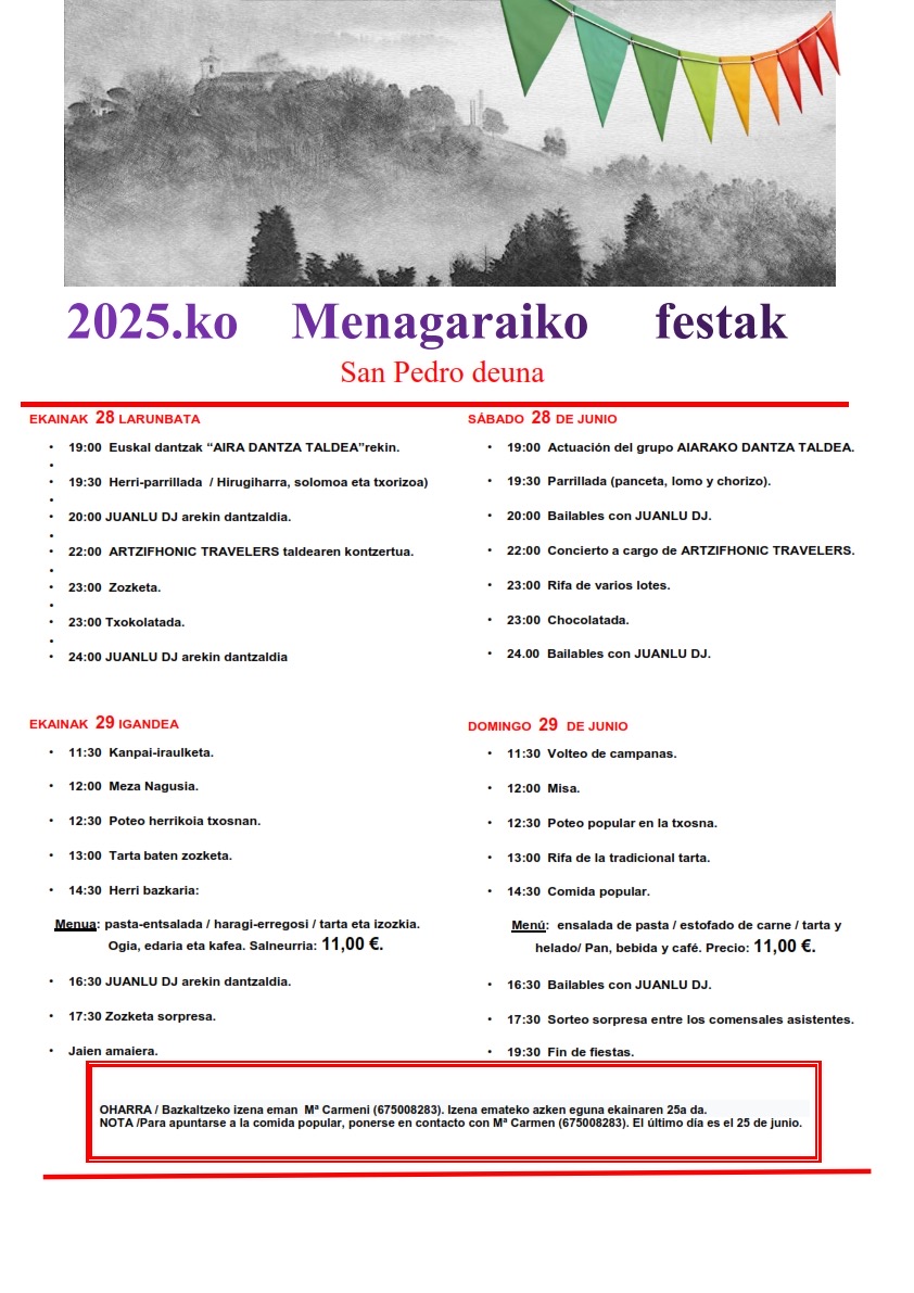 Egun guztia 28 June-29 June  Menagarai Aiara