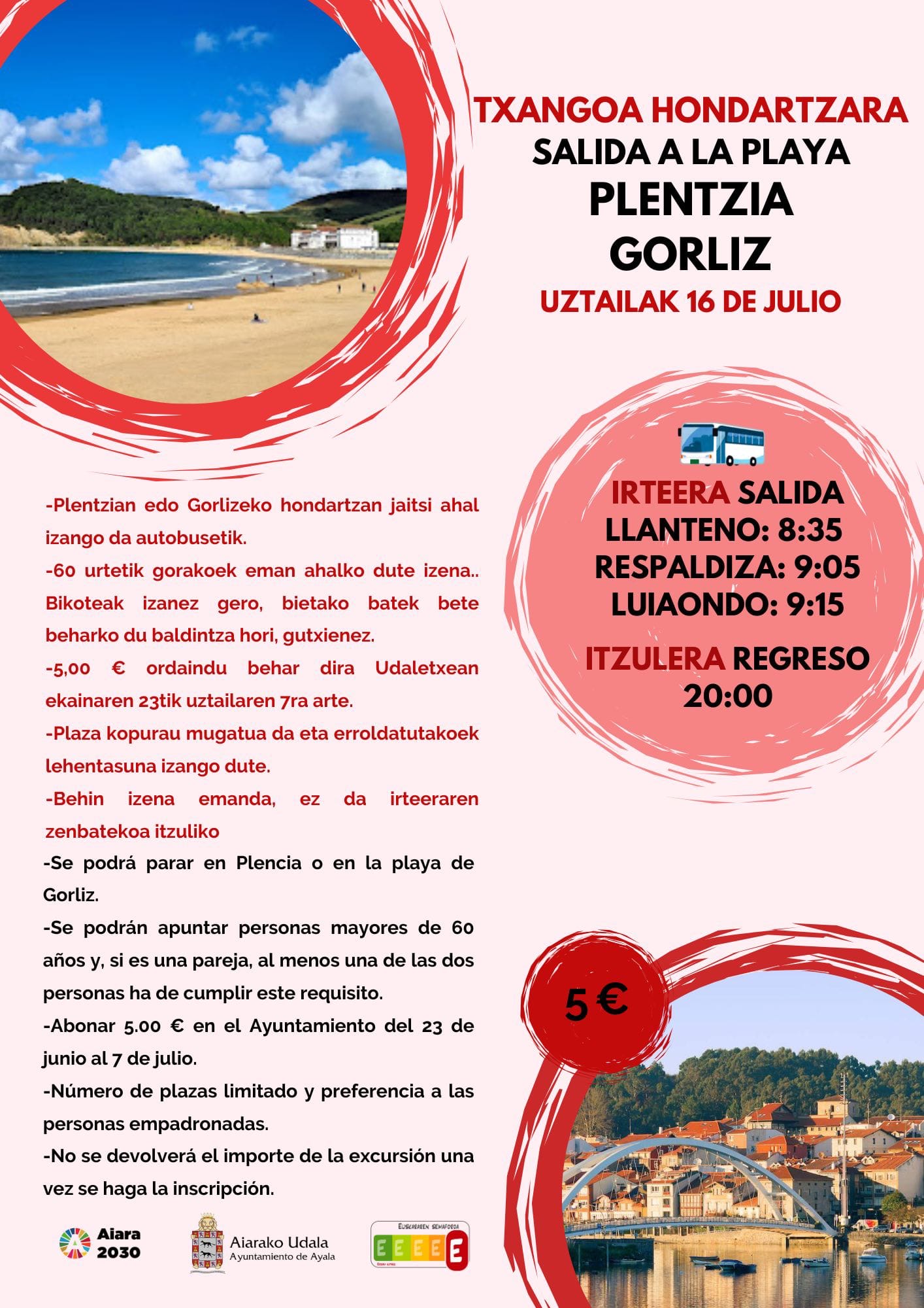 Gorlizko edo Plentziako hondartzara irteera. Aiara