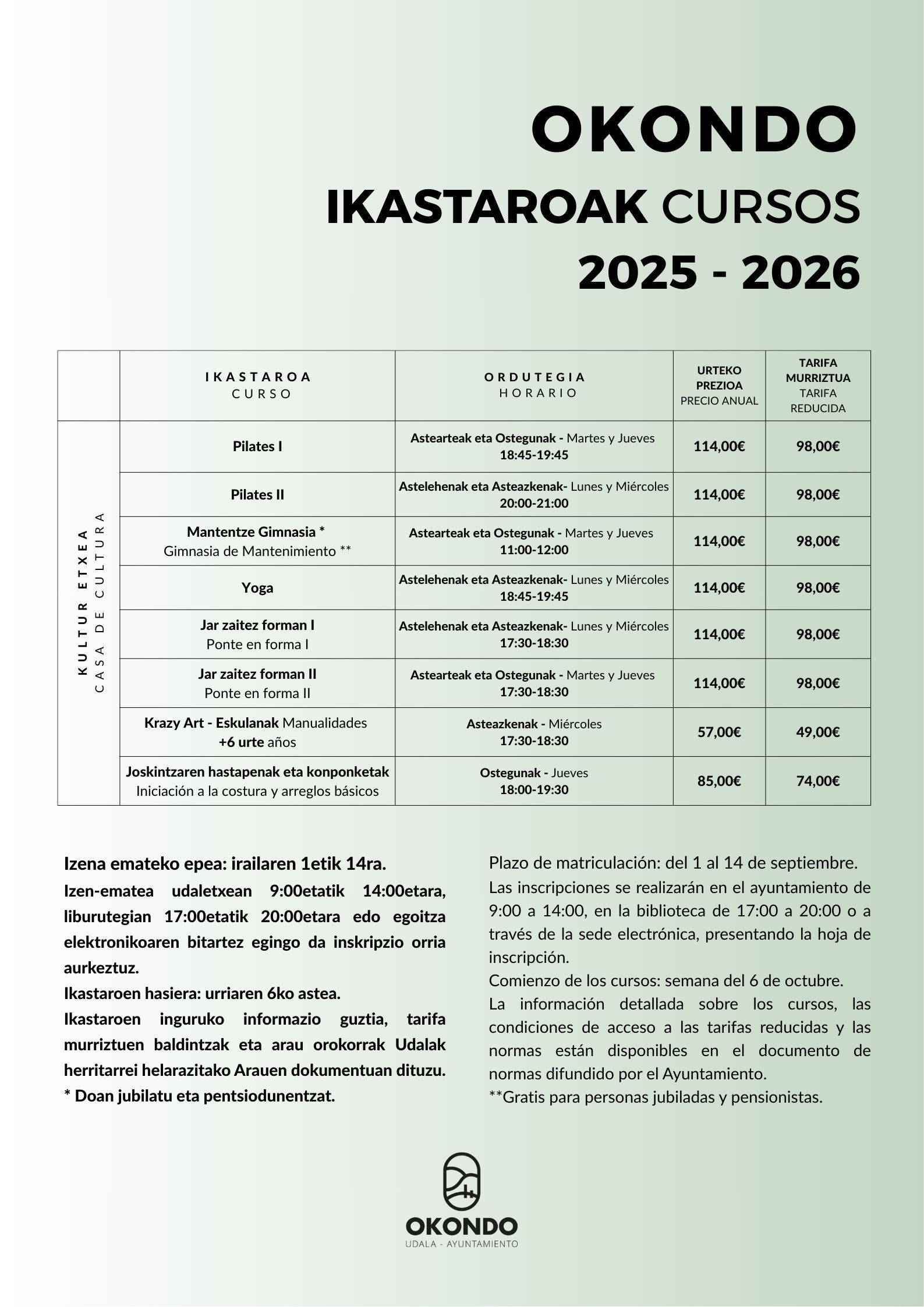 Okondo 2025-2026 ikastaroetan izena ematea. Okondo
