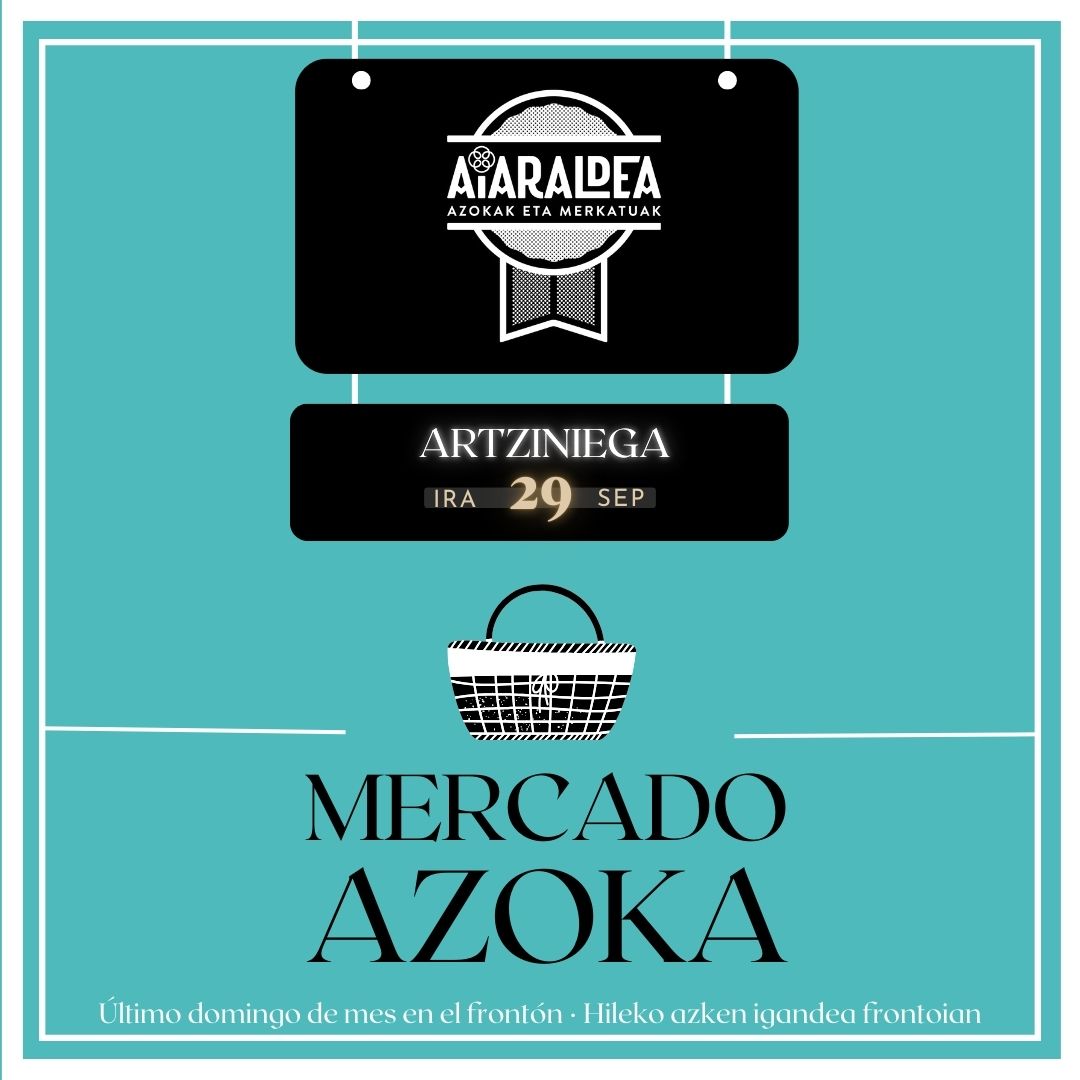 El 29 de septiembre se celebra el Mercado de Artziniega, como cada último domingo de mes, en el Frontón de Artziniega. Se podrán adquirir productos de proximidad elaborados en la comarca o en comarcas limítrofes. Una oferta de calidad donde