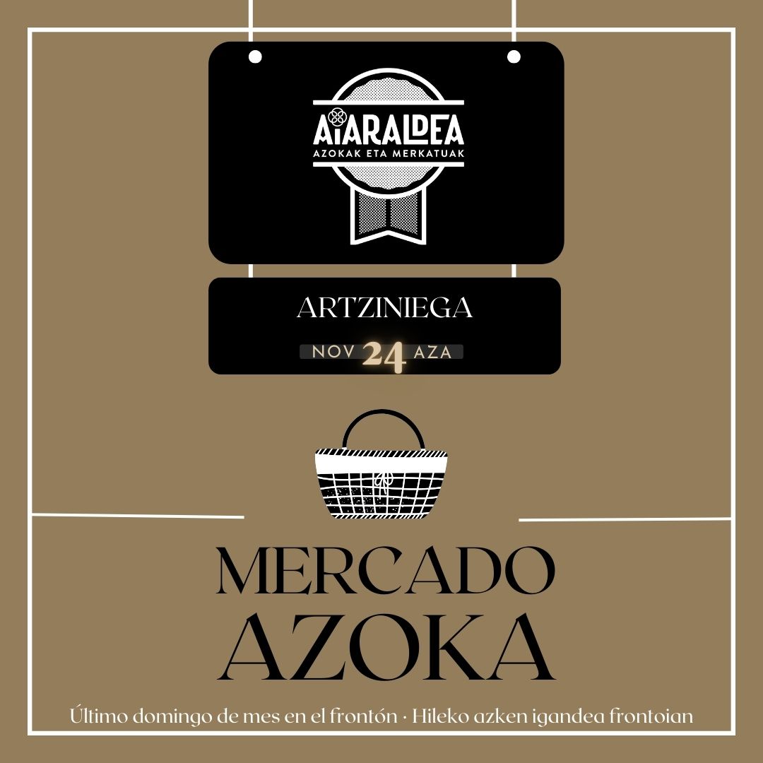 El 24 de noviembre se celebra el Mercado de Artziniega, como cada último domingo de mes, en el Frontón de Artziniega. Se podrán adquirir productos de proximidad elaborados en la comarca o en comarcas limítrofes. Una oferta de calidad donde poder