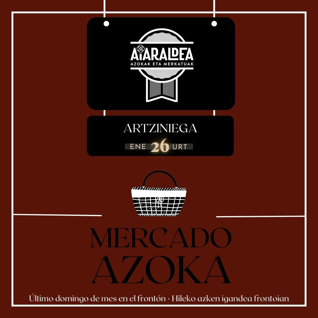 El 26 de enero se celebra el Mercado de Artziniega, como cada último domingo de mes, en el Frontón de Artziniega. Se podrán adquirir productos de proximidad elaborados en la comarca o en comarcas limítrofes. Una oferta de calidad donde