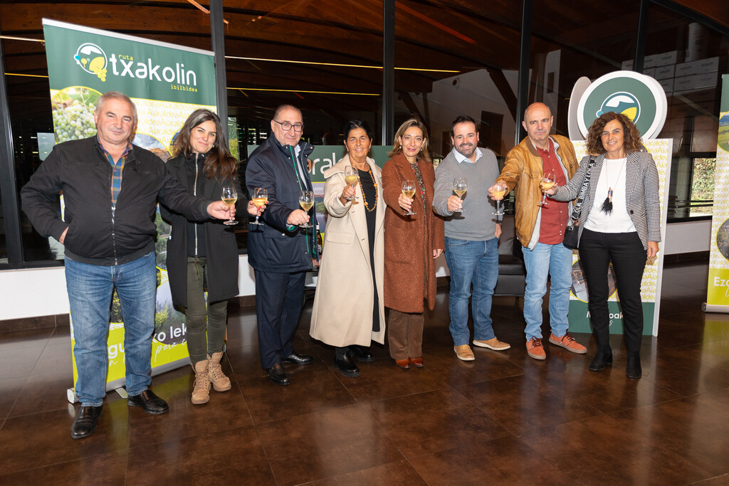 Presentación de la tercera edición del Txakoli bizi. Tras una visita guiada se hizo una degustación de producto local acompañada de txakoli de la comarca.