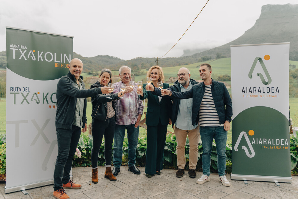La cuarta edición de Txakoli Bizi se presentó en la quesería Aguiñiga con un brindis con motivo del Día Mundial del enoturismo.