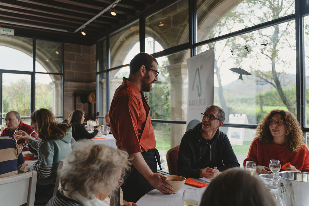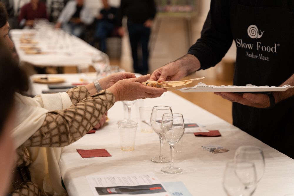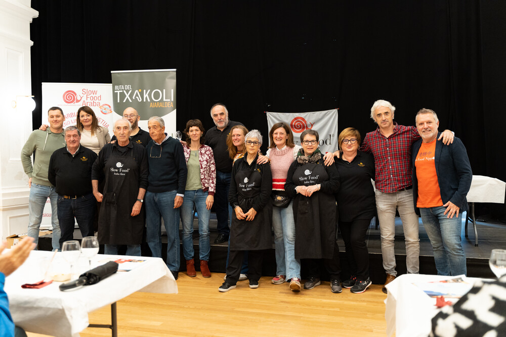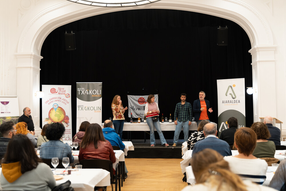 Una vez cocinadas las distintas elaboraciones con estos productos, las personas asistentes a este evento pudieron degustarlos maridados con distintos txakolis de la DO Arabako Txakolina. Una sugerente forma de poner cara a nuestras pequeñas y pequeños productores y, de paso, conocer su importante labor en nuestro entorno.