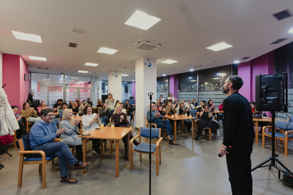 Esta actividad contó con el actor y humorista Jon Plazola, quien animó la velada con su monólogo “Tu-Tum, Platz!” en el Nagusien Etxea de Amurrio.